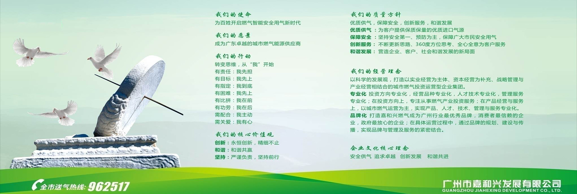 ——廣州市嘉和興發(fā)展有限公司于2001年3月1日注冊成立,主要從事瓶裝液化石油氣(LPG)批發(fā)貿易,民用、工業(yè)用液化石油氣,工業(yè)用氣體,汽車加氣站及危險品物流運輸等,總部設在廣州。目前公司經營三個液化氣充裝站、一個汽車加氣站:白云區(qū)神山達嶺液化石油氣站、白云區(qū)加禾氣站和佛山市南海區(qū)冠順氣站,黃埔區(qū)塘口汽車加氣站,總庫容接近800立方米。